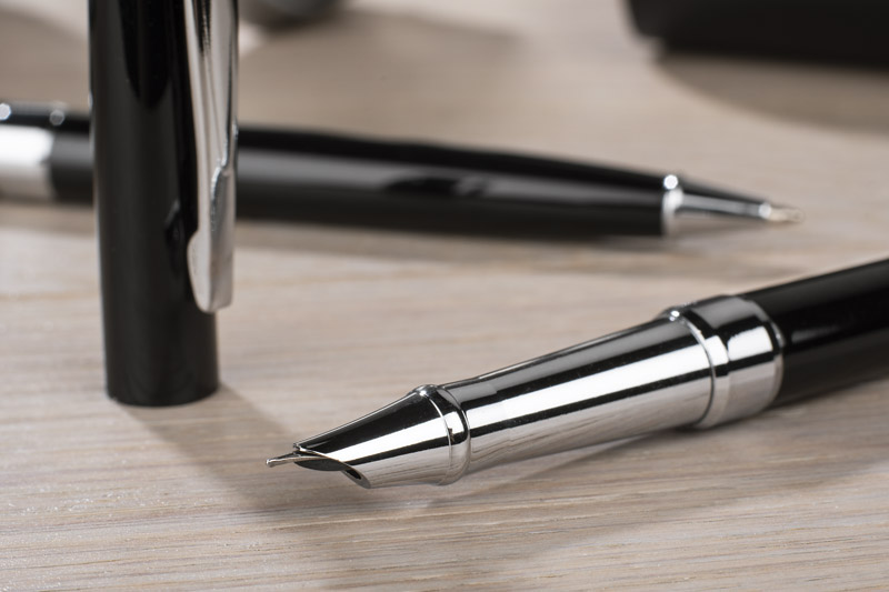 Chromowane wykończenia dodają pióru NEVADA szyku i blasku, sprawiając, że jest ono nie tylko narzędziem do pisania, ale również elementem wyróżniającym się na biurku. Stalówka tego pióra została umiejętnie schowana wewnątrz korpusu, co jest nie tylko praktyczne, ale również dodaje charakteru produktowi. Tłoczek, którym wyposażono pióro, zapewnia łatwość w napełnianiu i czystość podczas użytkowania.